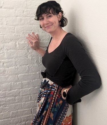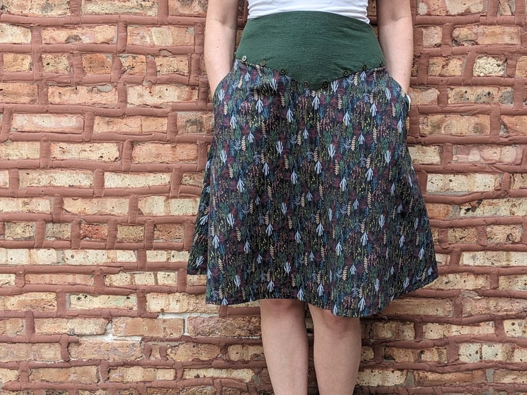 While Erin finds delight in beautiful fabrics and the challenge of constructing a design, her greatest joy comes from creating garments that make people feel amazing in their body. Erin, like many people, understands the feeling of her body not fitting into standard-sized clothing. She’s tall and regularly has to make wardrobe compromises. As a seamstress, she's witnessed firsthand that there's no such thing as a "normal" sized body and believes no one should feel shame for not fitting perfectly into a “standard” sized garment. Her ideology is that garments should be made to fit our body, rather than feeling our body has to shift to the garment.