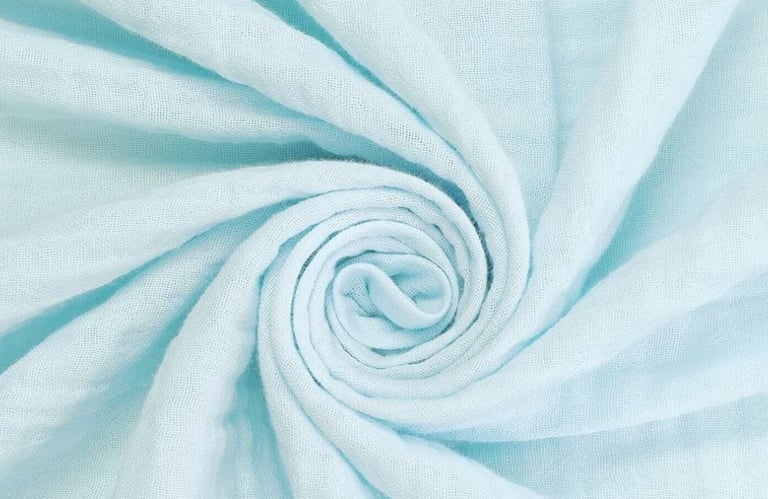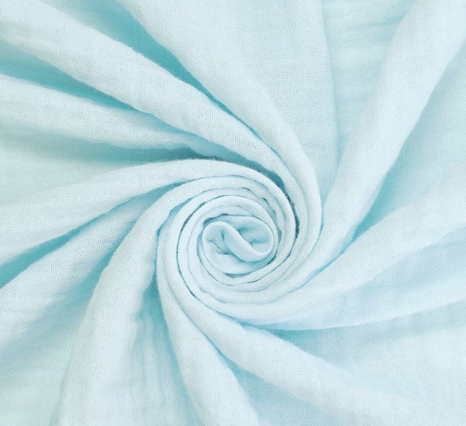 This floral print is vibrant and happy, and the baby blue brings out the brightest spots. The floral is a medium lightweight flowy viscose twill and the baby blue is a double cotton gauze.
