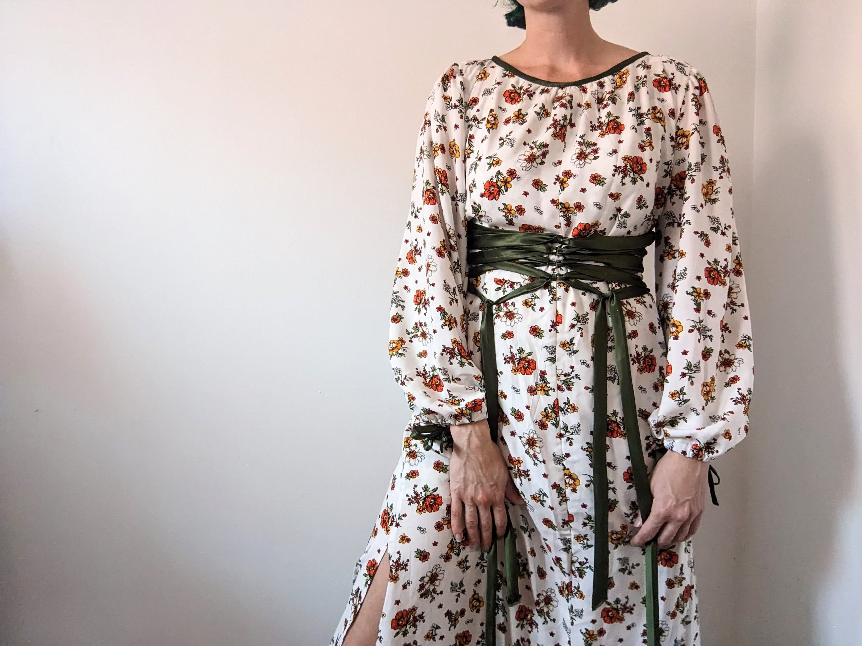 4. Green Georgette and Peach Gauze