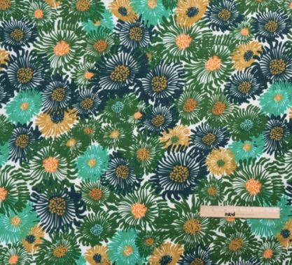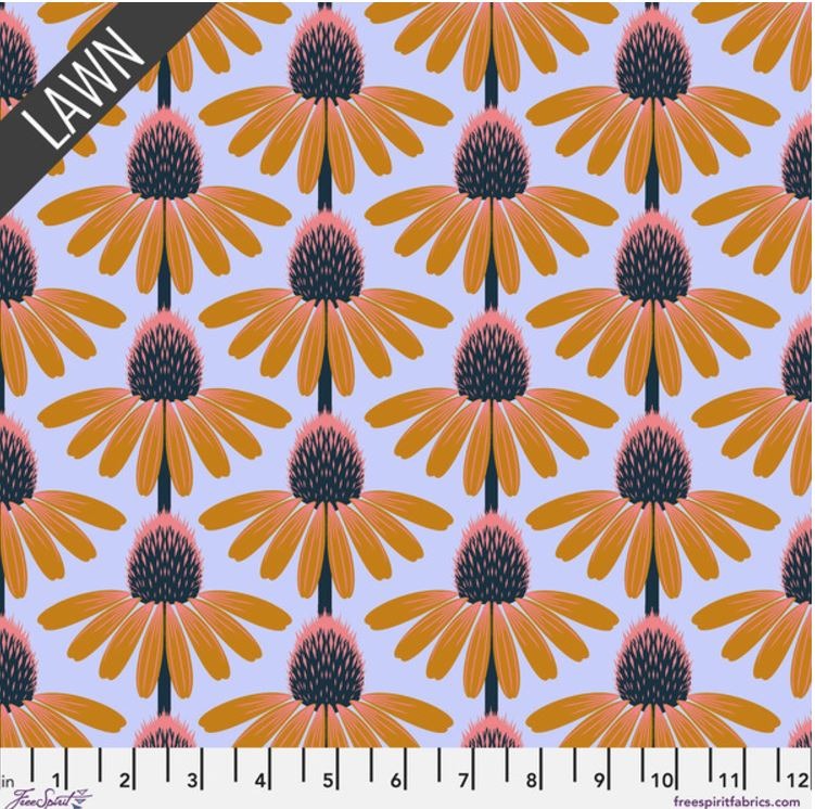 This floral lawn fabric is bright and modern, while the navy adds some seriousness. The lawn is a mid-lightweight fabric, while the navy has more structure making it a good accent material. Both are 100% cotton.