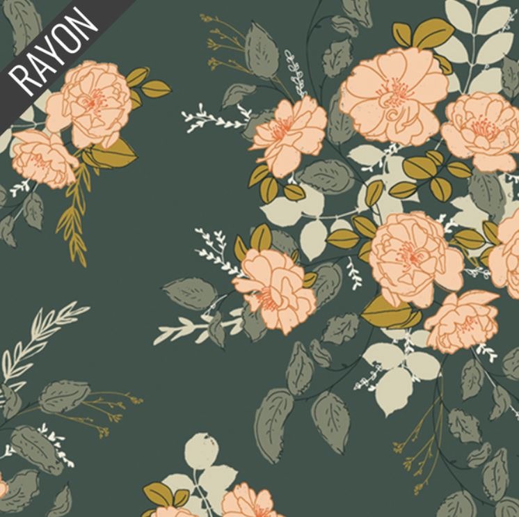 The green wildflower print feels vintage and playful, while the navy tone down the busy print. The dobby is a mid-lightweight fabric made from 100% viscose. The challis is lightweight fabric made from 100% rayon.