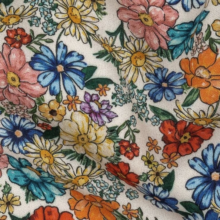 1. Bright Floral Twill with Baby Blue Cotton