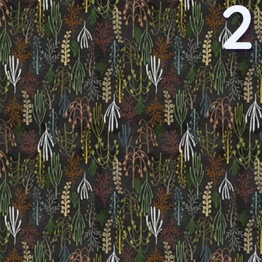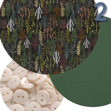 Sea plants with Green Gauze: Like our first combo, this is 100% cotton, making it a durable skirt that will last you for a long time. The print adds detail to the skirt, but the color palette makes the skirt more subdued. The gauze is lightweight, making it a great overskirt to give you lots of movement.