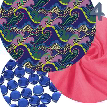 Waves with Pink Gauze: This combo is also 100% cotton, so it has the same durability as combos 1 & 2. The waves with the pink gauze and bright buttons makes this combo vibrant and playful. The gauze is lightweight, so it will move beautifully as an overskirt.