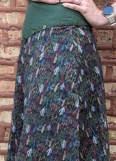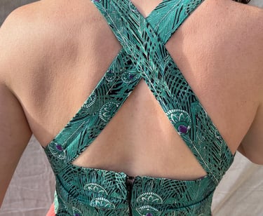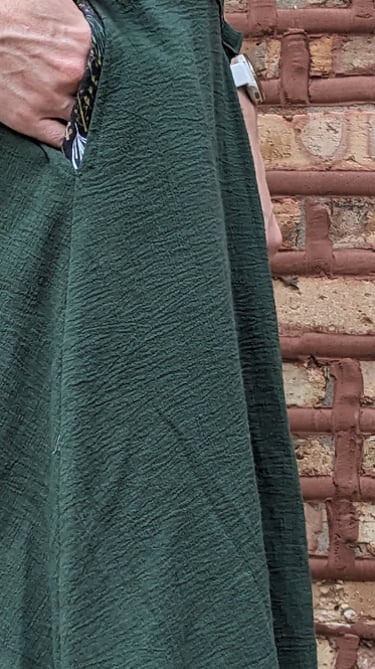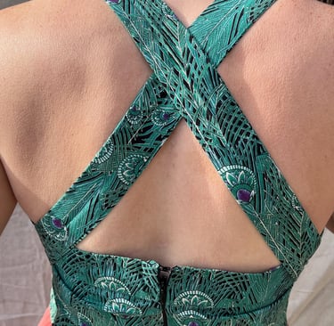 M.W. was frequently attending fall weddings and had nothing to wear. As a mom in her thirties in Phoenix, she wanted a dress that balanced many needs. She wanted the dress to be playful, but age appropriate. She wanted the dress to read fall, but to work in Arizona's warm climate and incorporate only a cool color pallet. She wanted to be able to style the dress formally for fancy events, and dress it down for casual outings. To achieve everything on her wish-list, we dreamed up a flowy satin and plaid dress. The plaid screams fall, while the flowy cotton skirt keeps her cool. The hi-lo skirt and combination of materials allow the dress the be fancied up with heels or worn casually with black sneakers. The sparkly plaid, buttons, pockets, and ruffle bring out the fun in this dress, while the pleats, shiny satin, and skirt length keep this dress classy and mature. Now M.W. is 100% prepared to attend her next wedding.