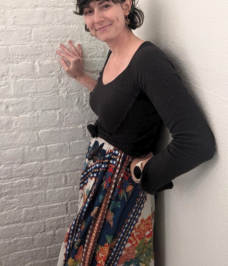 While Erin finds delight in beautiful fabrics and the challenge of constructing a design, her greatest joy comes from creating garments that make people feel amazing in their body. Erin, like many people, understands the feeling of her body not fitting into standard-sized clothing. She’s tall and regularly has to make wardrobe compromises. As a seamstress, she's witnessed firsthand that there's no such thing as a "normal" sized body and believes no one should feel shame for not fitting perfectly into a “standard” sized garment. Her ideology is that garments should be made to fit our body, rather than feeling our body has to shift to the garment.