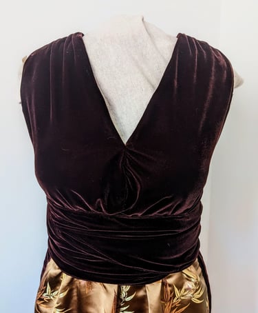 N.L. is a wedding planner and needed a dress to wear to formal events and fundraisers. She wanted a dress with a sweetheart bust that emphasized her chest and distracted from her midsection. She loved the idea of a garment that felt amazing to run her hands along, so we gave her a mixture of soft luscious velvet, a comfortable satin underskirt, and a full wild tulle skirt. The elegant beaded straps sweep into a low back that looks stunning on her. The satin strap in the back buttons at the perfect height to disguise a bra strap, while the structured bodice gives her plenty of shape, so she can wear this dress with or without a bra. She's ready for her next event!