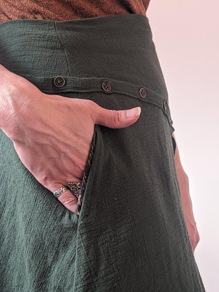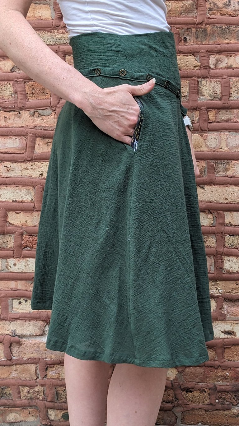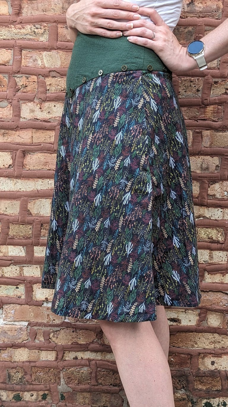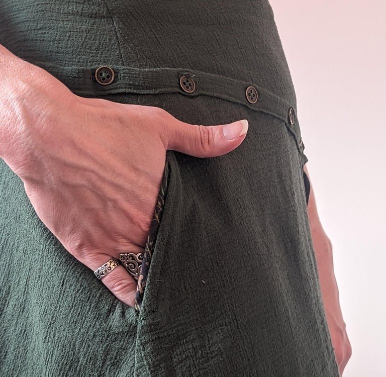 M.W. was frequently attending fall weddings and had nothing to wear. As a mom in her thirties in Phoenix, she wanted a dress that balanced many needs. She wanted the dress to be playful, but age appropriate. She wanted the dress to read fall, but to work in Arizona's warm climate and incorporate only a cool color pallet. She wanted to be able to style the dress formally for fancy events, and dress it down for casual outings. To achieve everything on her wish-list, we dreamed up a flowy satin and plaid dress. The plaid screams fall, while the flowy cotton skirt keeps her cool. The hi-lo skirt and combination of materials allow the dress the be fancied up with heels or worn casually with black sneakers. The sparkly plaid, buttons, pockets, and ruffle bring out the fun in this dress, while the pleats, shiny satin, and skirt length keep this dress classy and mature. Now M.W. is 100% prepared to attend her next wedding.